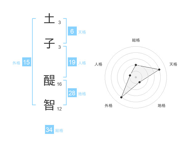 土子 醍智さんの総格は34画の2点!