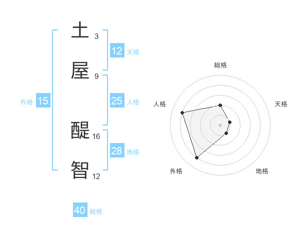 土屋 醍智さんを姓名の画数から五運を鑑定