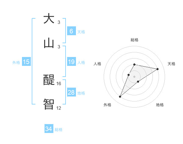 大山 醍智さんの総格は34画の2点!