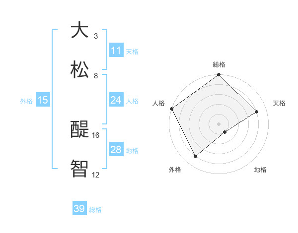 大松 醍智さんの総格は39画の5点!