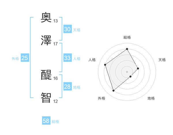 奥澤 醍智さんの総格は58画の4点!