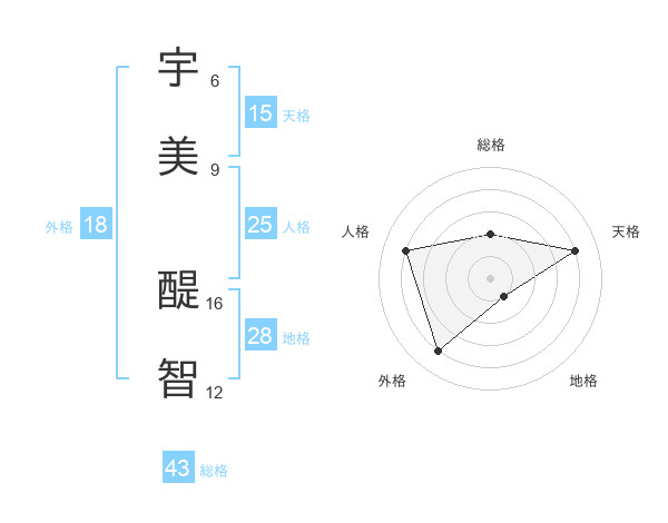 宇美 醍智さんの天格は15画の4点!