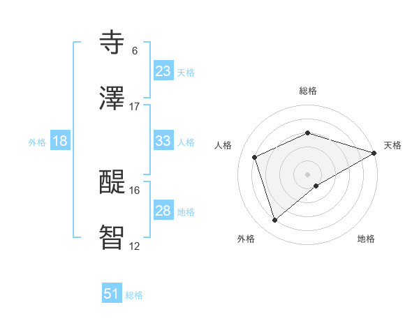 寺澤 醍智さんを姓名の画数から五運を鑑定