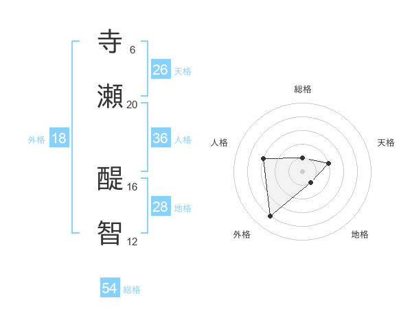 寺瀬 醍智さんの総格は54画の1点!