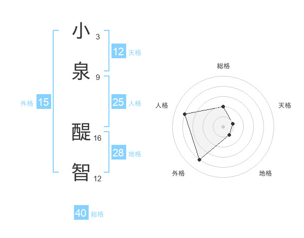 小泉 醍智さんを姓名の画数から五運を鑑定