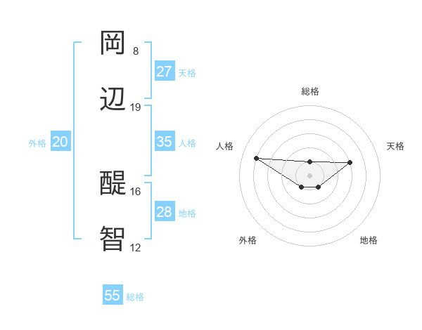 岡辺 醍智さんの総格は55画の1点!