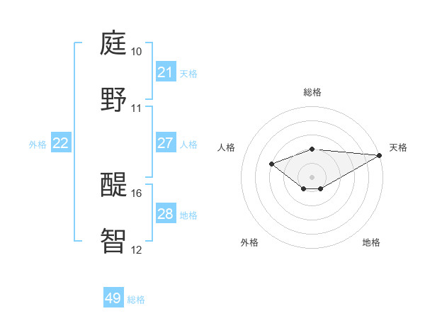 庭野 醍智さんを姓名の画数から五運を鑑定