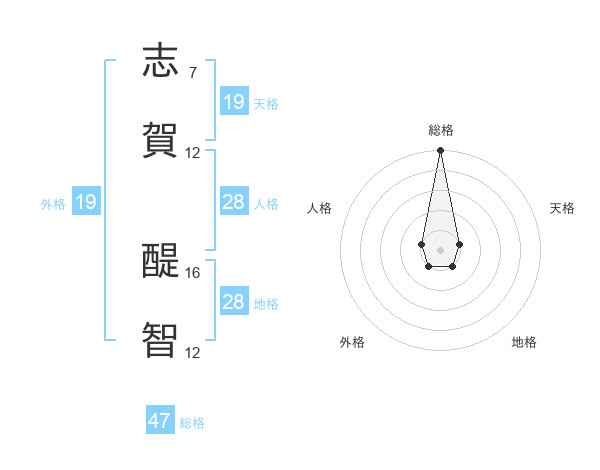 志賀 醍智さんの総格は47画の5点!