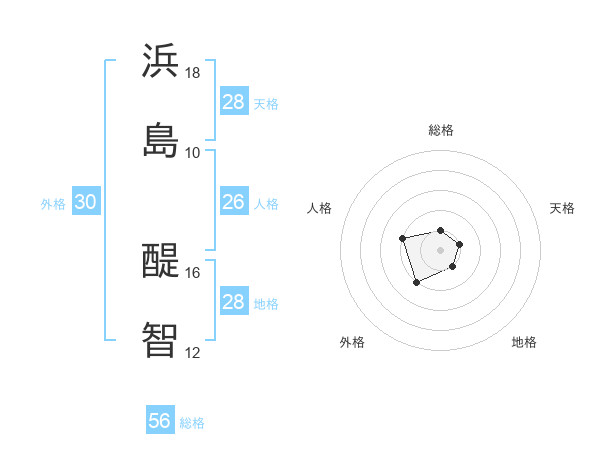 浜島 醍智さんを姓名の画数から五運を鑑定