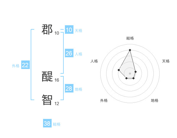 郡 醍智さんの総格は38画の4点!