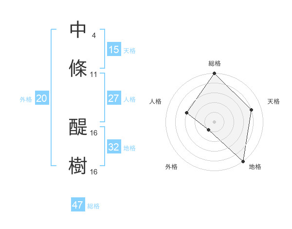 中條 醍樹さんの外格は20画の1点!