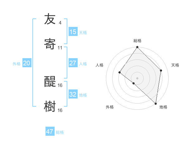 友寄 醍樹さんを姓名の画数から五運を鑑定