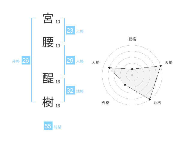 宮腰 醍樹さんを姓名の画数から五運を鑑定