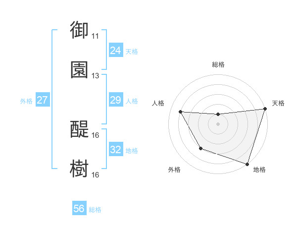 御園 醍樹さんを姓名の画数から五運を鑑定