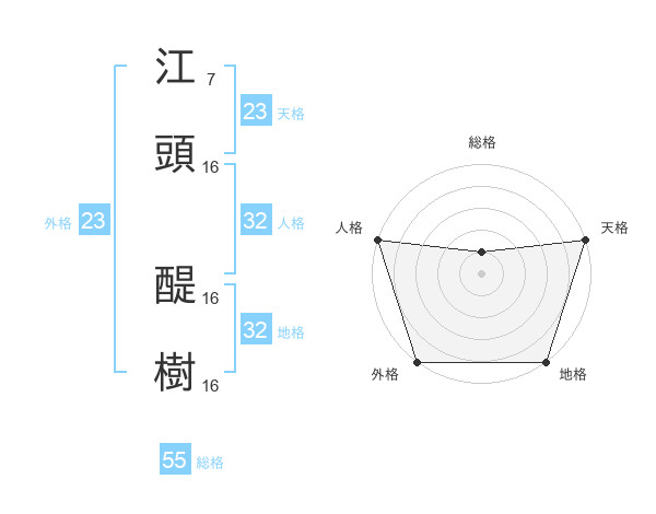 江頭 醍樹さんの総格は55画の1点