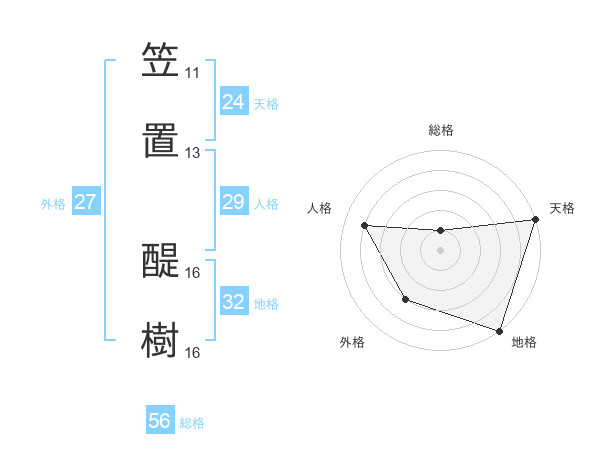 笠置 醍樹さんの総格は56画の1点!