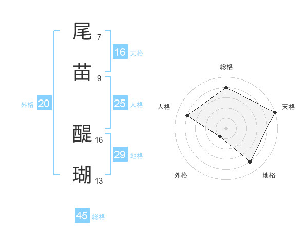 尾苗 醍瑚さんを姓名の画数から五運を鑑定