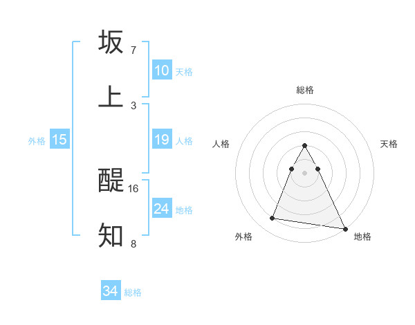 坂上 醍知さんを姓名の画数から五運を鑑定
