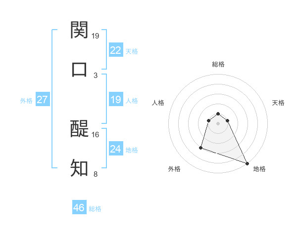 関口 醍知さんを姓名の画数から五運を鑑定