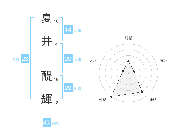 夏井 醍輝さんの外格は23画の5点!