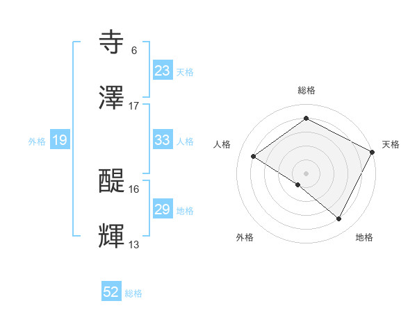 寺澤 醍輝さんを姓名の画数から五運を鑑定