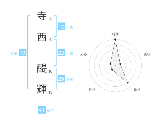 寺西 醍輝さんの総格は41画の5点!