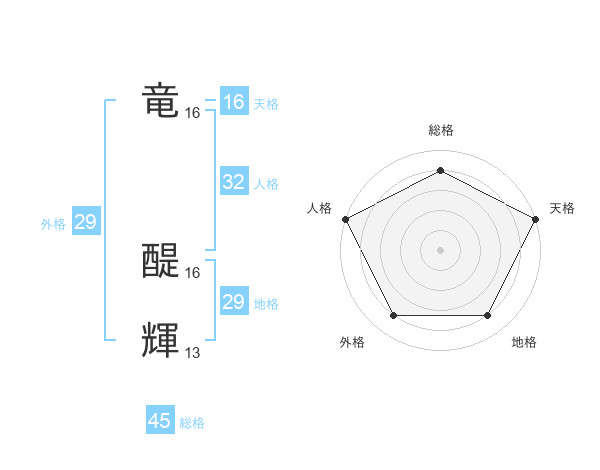 竜 醍輝さんを姓名の画数から五運を鑑定