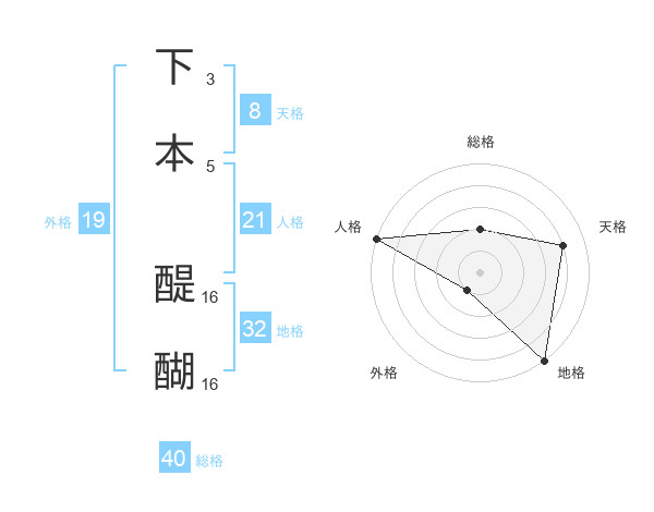下本 醍醐さんを姓名の画数から五運を鑑定