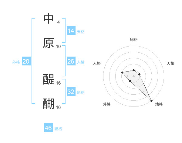 中原 醍醐さんを姓名の画数から五運を鑑定