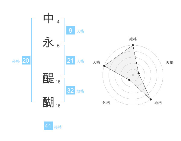 中永 醍醐さんを姓名の画数から五運を鑑定