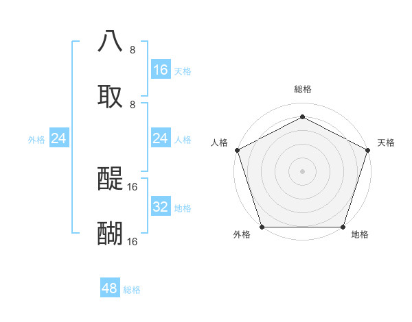 八取 醍醐さんを姓名の画数から五運を鑑定