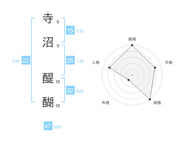 寺沼 醍醐さんの外格は22画の1点!