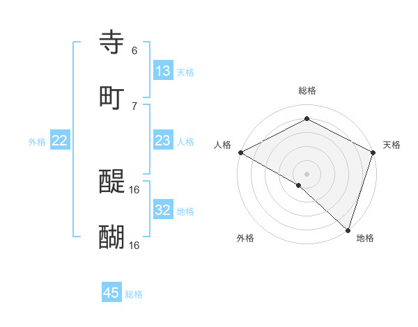 寺町 醍醐さんを姓名の画数から五運を鑑定