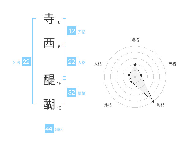 寺西 醍醐さんを姓名の画数から五運を鑑定