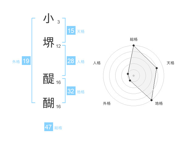 小堺 醍醐さんを姓名の画数から五運を鑑定