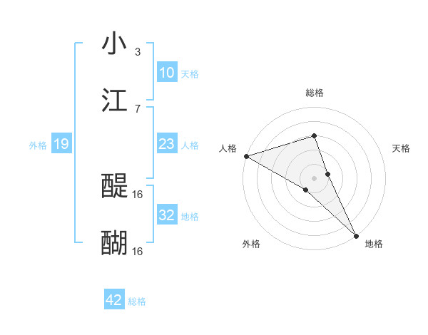小江 醍醐さんを姓名の画数から五運を鑑定