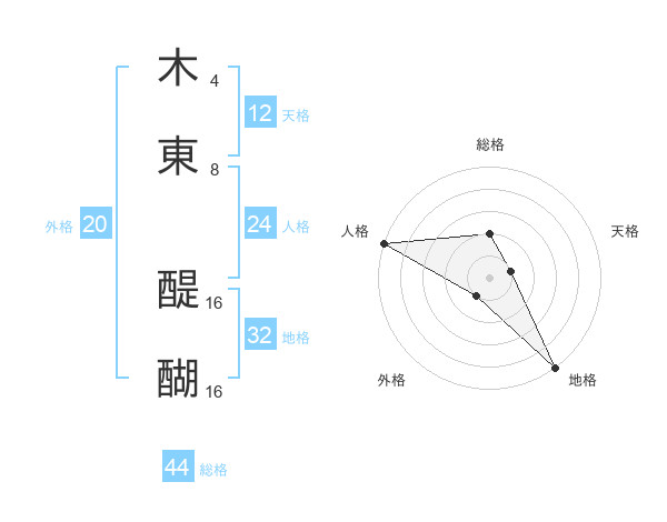 木東 醍醐さんを姓名の画数から五運を鑑定