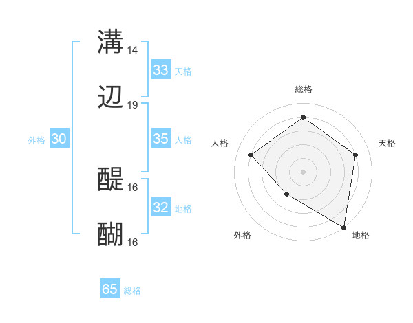 溝辺 醍醐さんの総格は65画の4点!