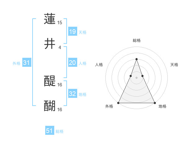 蓮井 醍醐さんの外格は31画の5点!