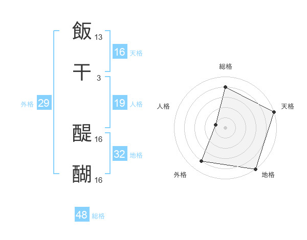 飯干 醍醐さんの総格は48画の4点!