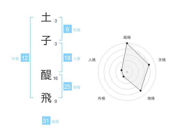 土子 醍飛さんの総格は31画の5点!