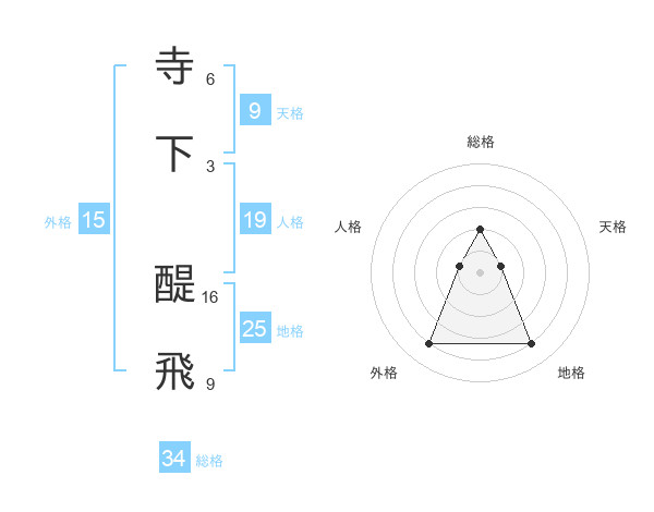 寺下 醍飛さんを姓名の画数から五運を鑑定
