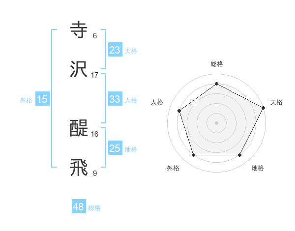 寺沢 醍飛さんを姓名の画数から五運を鑑定