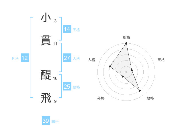 小貫 醍飛さんの総格は39画の5点!