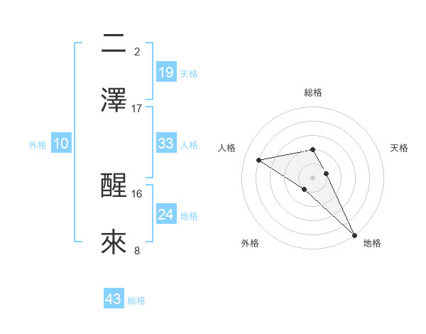 二澤 醒來さんの総格は43画の2点!