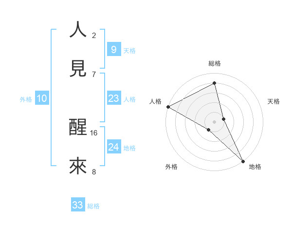 人見 醒來さんの総格は33画の4点!