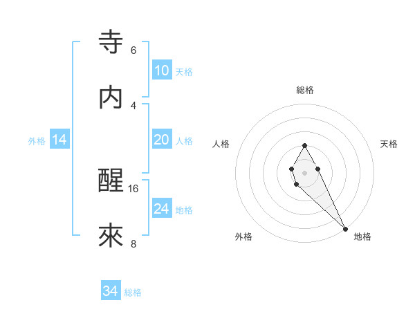 寺内 醒來さんを姓名の画数から五運を鑑定