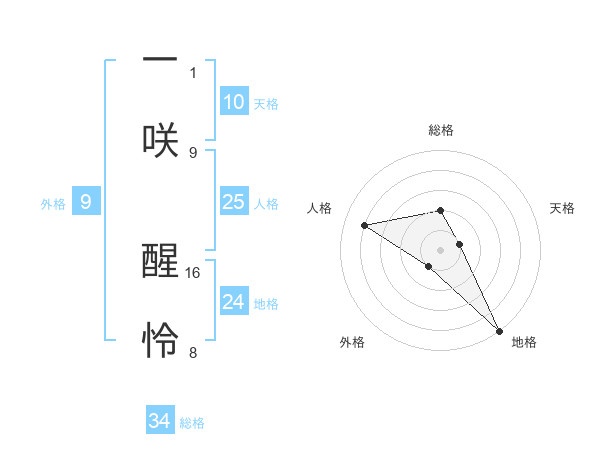 一咲 醒怜さんを姓名の画数から五運を鑑定