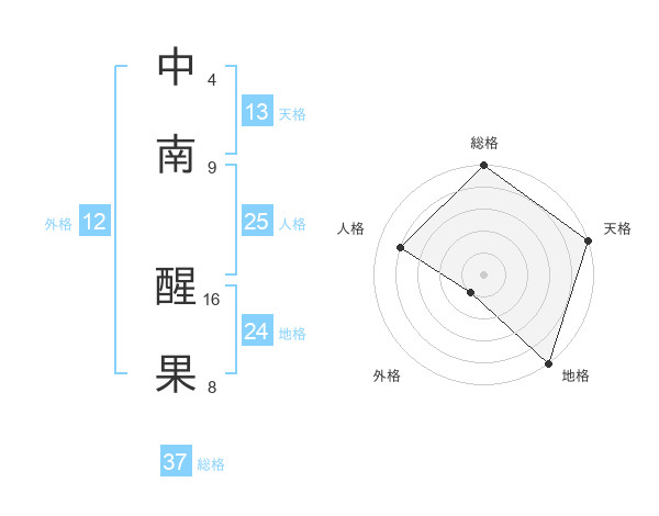 中南 醒果さんの総格は37画の5点!