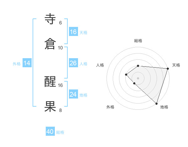 寺倉 醒果さんを姓名の画数から五運を鑑定
